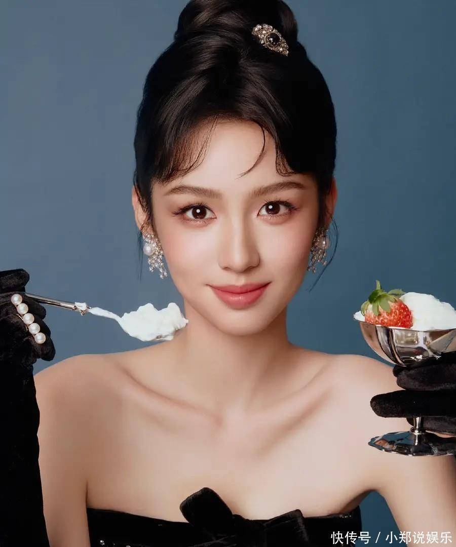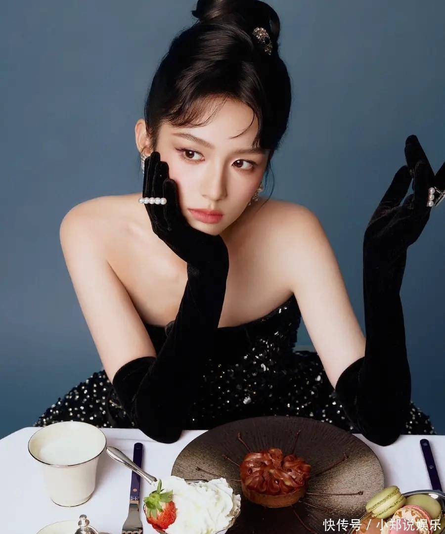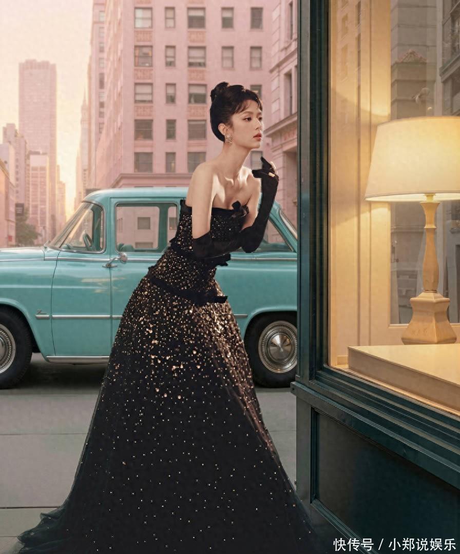 昨天一刷手机,就看到周也那组新的写真刷屏了。黑色抹胸裙上细碎的钻,闪得跟夜空里的星星似的,她往那儿一站,那股“千金大小姐”的优雅贵气,确实没得说。但不知道为啥,我看着她这身华丽打扮,脑子里闪过的,却是另一个完全不一样的她。